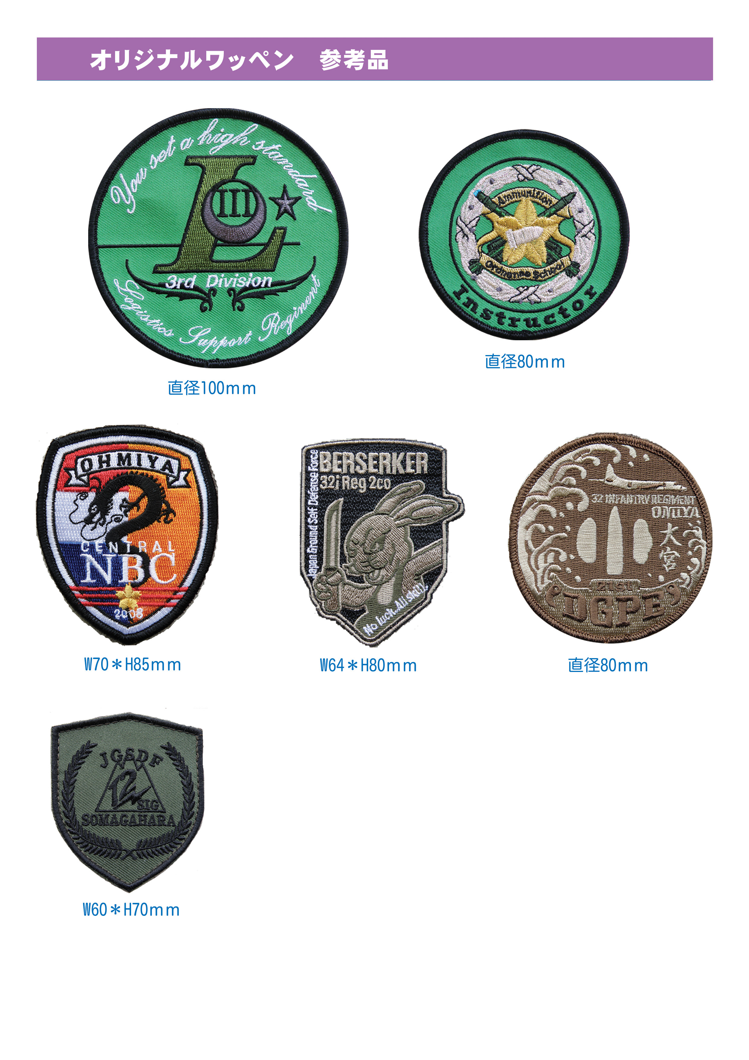 HOME & カタログ ≫ オリジナルワッペン 参考品 ≫